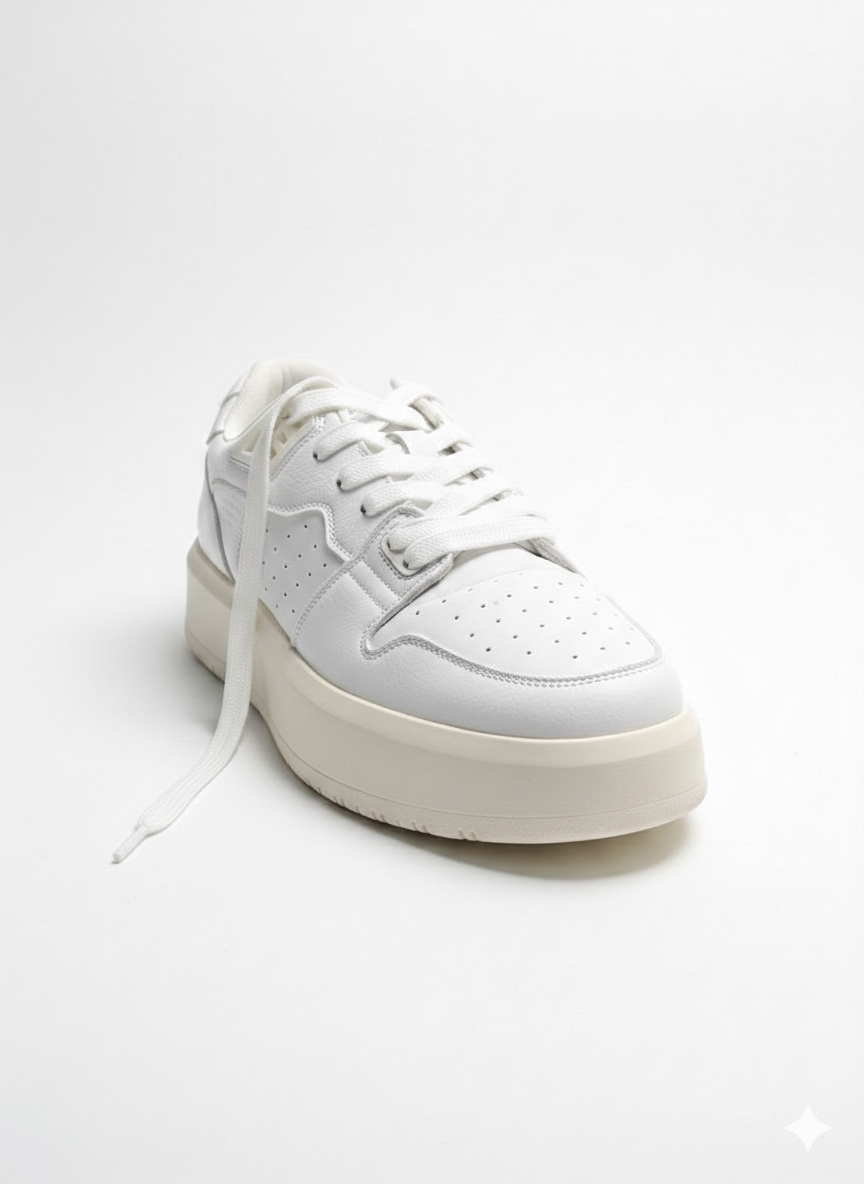 Featuring a sleek white upper with stitching details, these sneakers exude a high-end and trendy look. The toe box features perforations for better airflow, ensuring your feet stay cool all day long. The thick platform sole provides added height and a strong streetwear look without sacrificing comfort and stability.